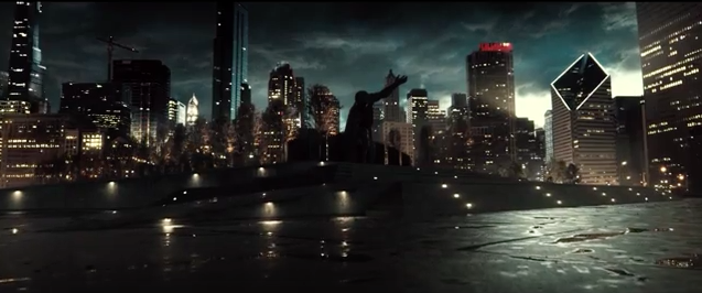 Here we have the first shot of the trailer which shows a newly rebuilt city. It can be safe to assume that this is Metropolis, the home of Superman, as the outline of a statue can be seen. The fact that it has been rebuilt suggests maybe a considerable amount of time has passed since Man of Steel as there was not much left of the city after the final battle with General Zod.