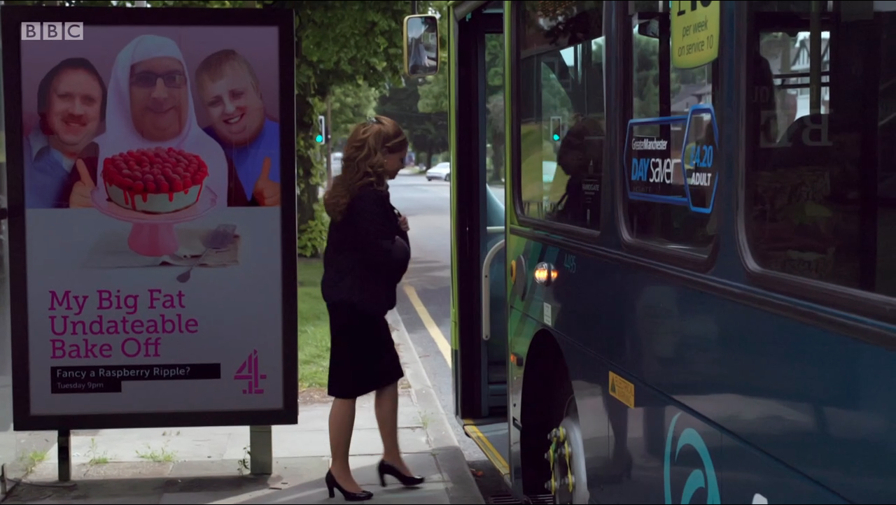 The first on the list is a not-so-subtle advertisement for what may possibly be the best crossover in TV history. The poster shows a mash-up of ‘My Big Fat Gypsy Wedding’, The Undateables’ and ‘The Great British Bake Off’ alongside a picture of a nun, two guys, and a cake. Eagle eyed viewers will also notice the caption reads ‘Any fancy a raspberry ripple?’.  Kay is no stranger to mocking TV shows, as many will remember Geraldine McQueen winning ‘Britain’s Got the Pop Factor… and Possibly a New Celebrity Jesus Christ Soapstar Superstar Strictly on Ice’. A future project perhaps?